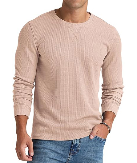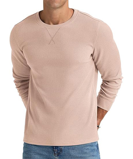 • This crewneck t-shirts features with waffle pattern, long sleeve, slim fit, crewneck, the “X” stitching design under the collar, durable stitching on cuffs, shoulders and hem, premium waffle fabric. The neckline provides a comfortable fit and enhances the overall look of the shirt, lending a neat sense of texture to your line-up.